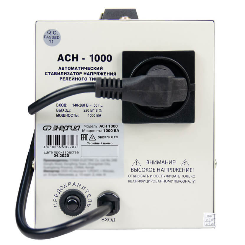 Технические характеристики стабилизатора напряжения Энергия АСН-1000