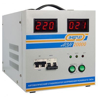 Релейный стабилизатор напряжения Энергия АСН-20000 является самым мощным однофазным стабилизатором в модельном ряду. Он способен обеспечить качественным электропитанием большое количество разнообразных приборов таких как: обогреватели, котлы, насосы глубокого погружения, холодильное оборудование и т.п. Стабилизатор рассчитан на применение, в том числе при отрицательных температурах, что позволит эксплуатировать его в полностью автоматическом режиме круглогодично на не отапливаемых объектах (например, гараж, склад или производственное помещение).