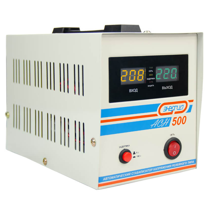 Автоматический стабилизатор напряжения Энергия АСН-500 используется для защиты маломощного оборудования от избыточного или недостаточного напряжения электросети, а так же от частых колебаний напряжения в диапазоне от 120 до 280В. Благодаря своим компактным габаритам, малому весу и возможности работать при отрицательных температурах стабилизатор может быть использован для защиты кассовых аппаратов, газовых котлов или другого маломощного оборудования в неотапливаемых помещениях или передвижных торговых точках.