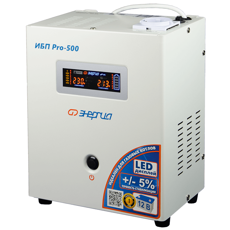 Энергия ИБП Pro 500 используется в системах бесперебойного питания с внешними аккумуляторами и позволяет подобрать количество и ёмкость АКБ под требуемое время автономной работы. Благодаря цифровому ШИМ-преобразователю, инвертор выдаёт чистую синусоиду, что делает возможным использовать его с такими чувствительными приборами как газовые котлы, медицинское оборудование, и в других случаях, когда обычные ИБП с модифицированной синусоидой использовать нельзя.