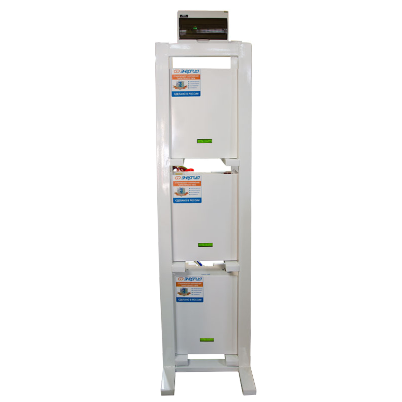 Коммутационная стойка Энергия 175-М-4 предназначена для подключения стабилизаторов напряжения Classic, Ultra и Voltron к трехфазной сети. Использование стойки упрощает электромонтаж комплекта стабилизаторов и позволяет минимизировать занимаемую площадь.