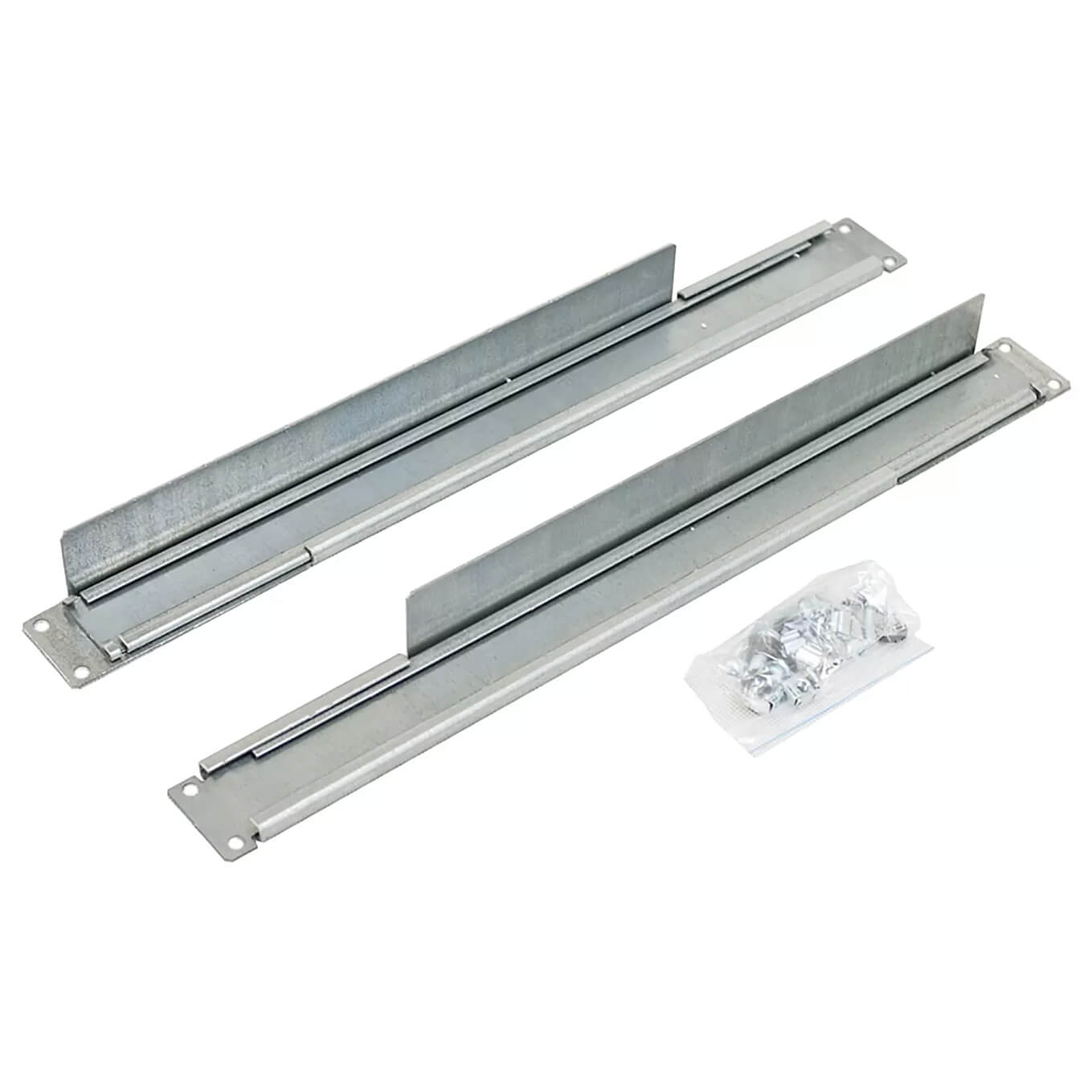 Комплект выполнен полностью из металла и состоит из трех частей – ползуна, левого и правого кронштейна. Он предназначен для размещения в шкафах и стойках стандарта 19 дюймов глубиной 600 и 800 мм (ГОСТ 28601.1-90) инверторных стабилизаторов напряжения ИнСтаб IS-RT 1-20 кВА, стабилизаторов 3:1 6-20 кВА, а так же трехфазных стабилизаторов 6-20 кВА.