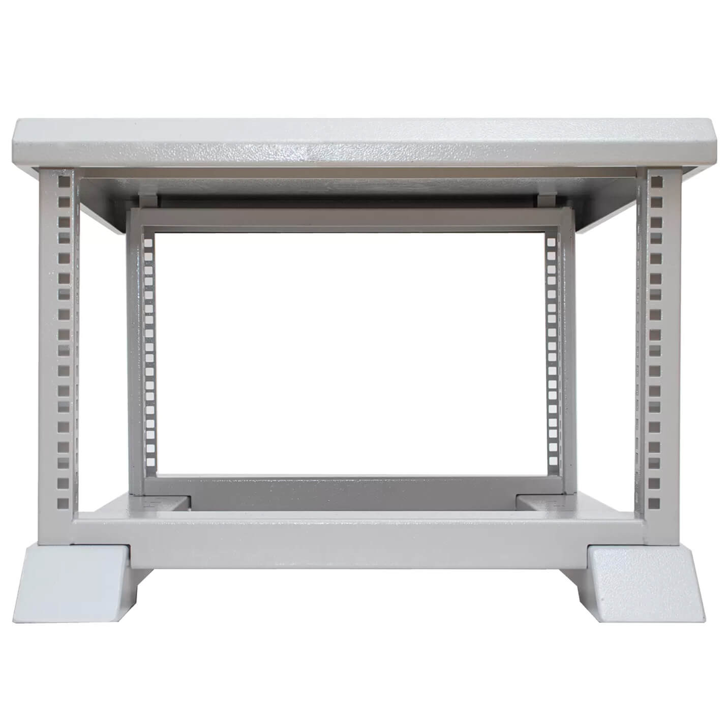 19-дюймовая стойка Штиль R-06-02 состоит из двух перфорированных рам (сваренных по всему контуру) и двух опор из стального профиля толщиной 2 мм. Сверху установлена крышка из стального профиля толщиной 1,5 мм, которая обеспечивает повышенную жесткость конструкции.