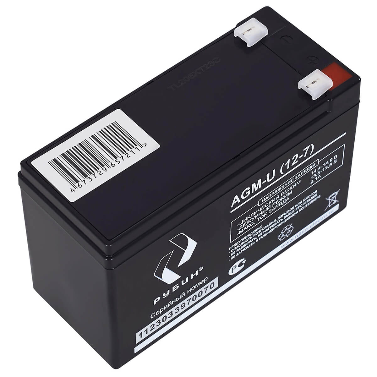 Аккумулятор Рубин AGM-U (12-7) относится к классу герметичных необслуживаемых AGM-батарей (электролит, абсорбированный в стекловолоконном сепараторе) с системой рекомбинации газов (VRLA). Аккумулятор предназначен для работы как в циклическом, так и буферном режиме и способен выдерживать глубокие разряды (до 10-15%). Легированные кальцием свинцовые пластины обеспечивают низкий саморазряд (<3%/мес) и высокую конструктивную прочность решетки, позволяющую выдерживать в 2-3 раза больше циклов разряда-заряда (до 1000 циклов) и обеспечивающую длительный срок службы (6-8 лет) без существенной потери ёмкости.